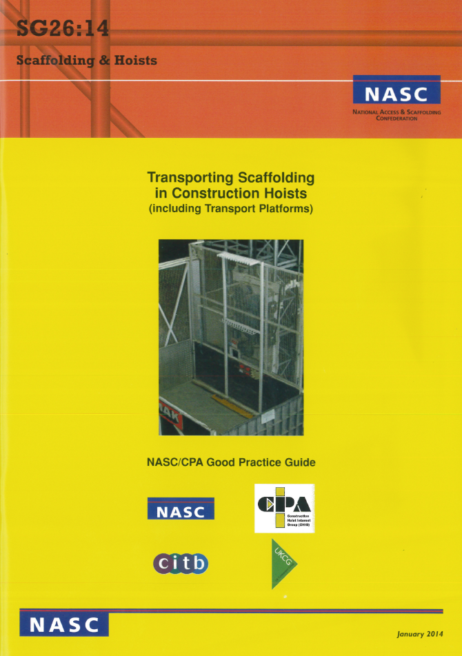 The NASC’s Safety Guidance on ‘Transporting Scaffolding in Construction Hoists’ – SG26:14 – has been published and is available at